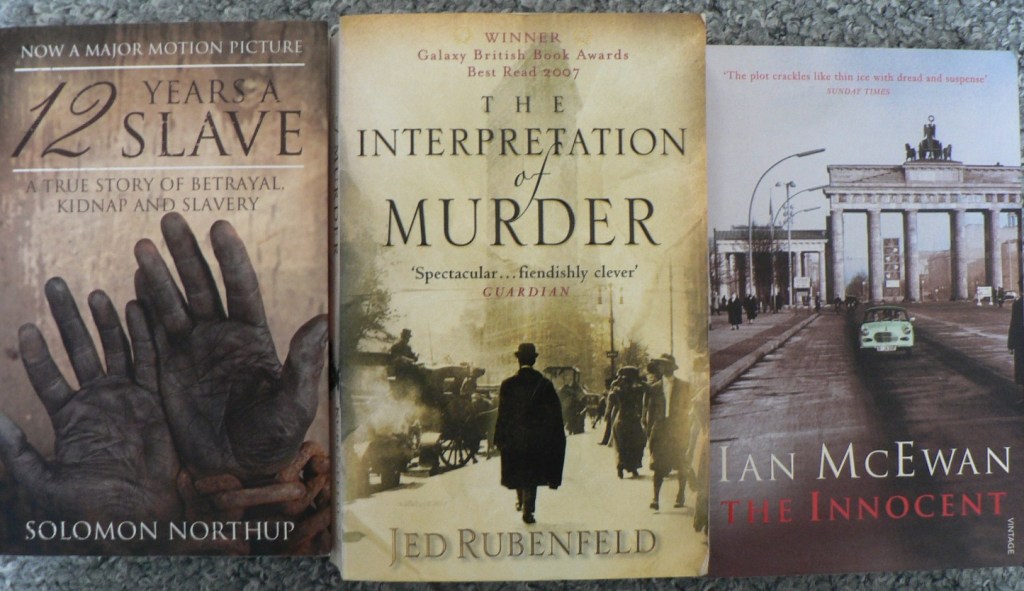 Below are examples of historical fiction covers. Again, apart from the obvious symbolism of 12 Years a Slave, they bear stylised references to the eras and locations the books are set in: The Interpretation of Murder in turn-of-the-century Manhattan, New York, and The Innocent in Cold-War Berlin. The reader is given a clear message: this is your destination if you choose to journey into this story.